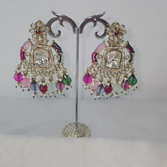 Earrings Mehndi Gold with a combination of reverse AD & front facing AD. Kundan jewellery.