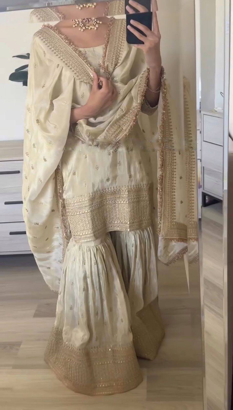 Pakistani Kurti & Gharara with Duppatta fully stitched.