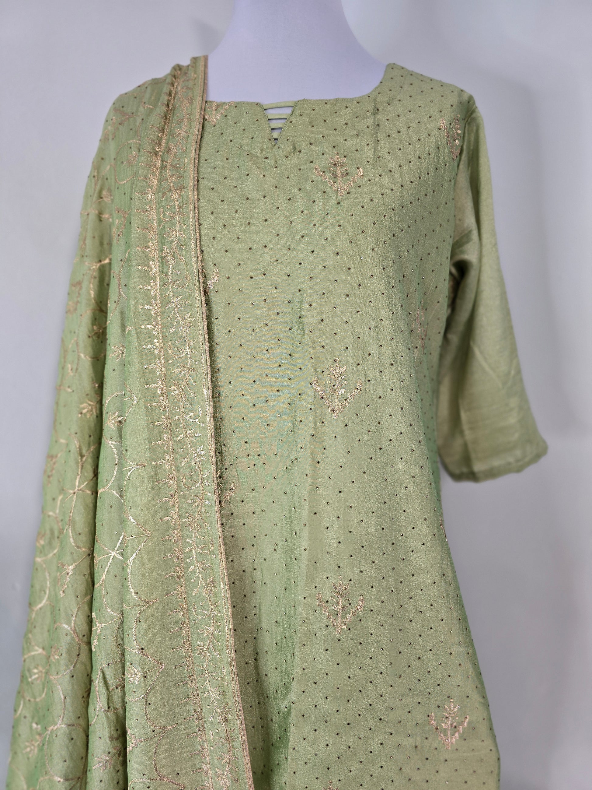 Kinza. Fabric Vichitra Slik. Golden embroidery & crystal
